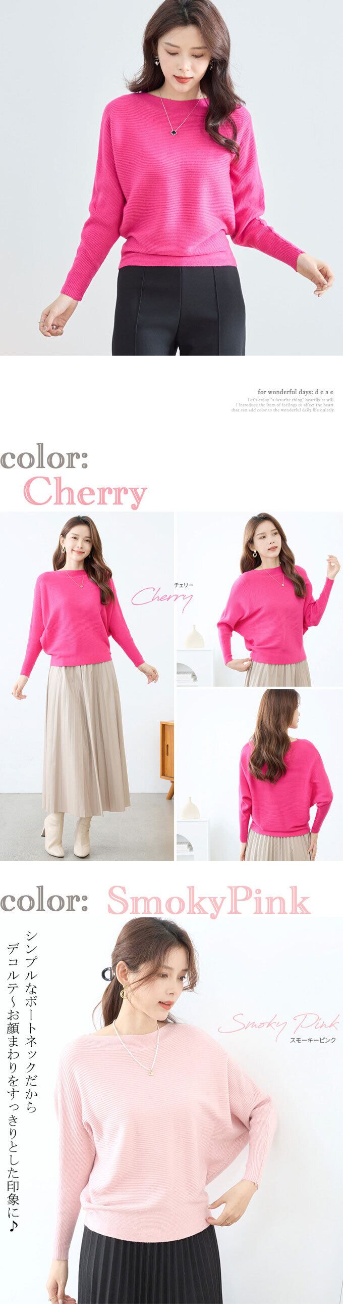 【再入荷1/8】ニット ドルマン ボートネック 長袖 トップス レディース 上品 綺麗め シンプル 着回し カジュアル 「着回し力抜群!もっちりニットのドルマントップス」 ローズピンク スモーキーピンク ネイビー ターコイズ ロイヤルブルー サックスブルーda10274