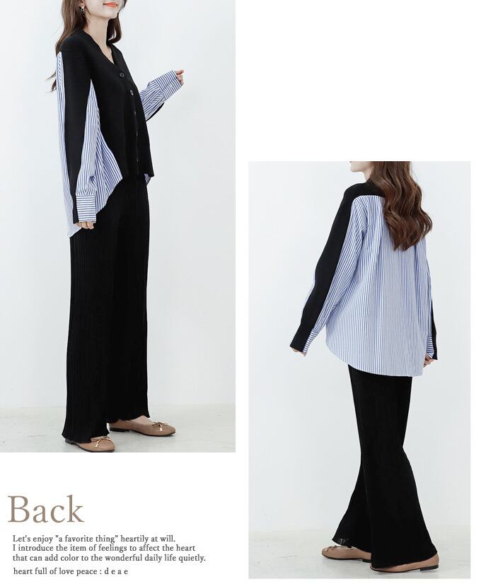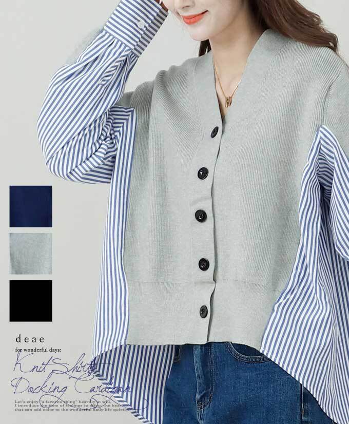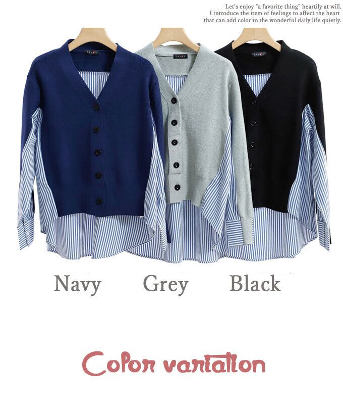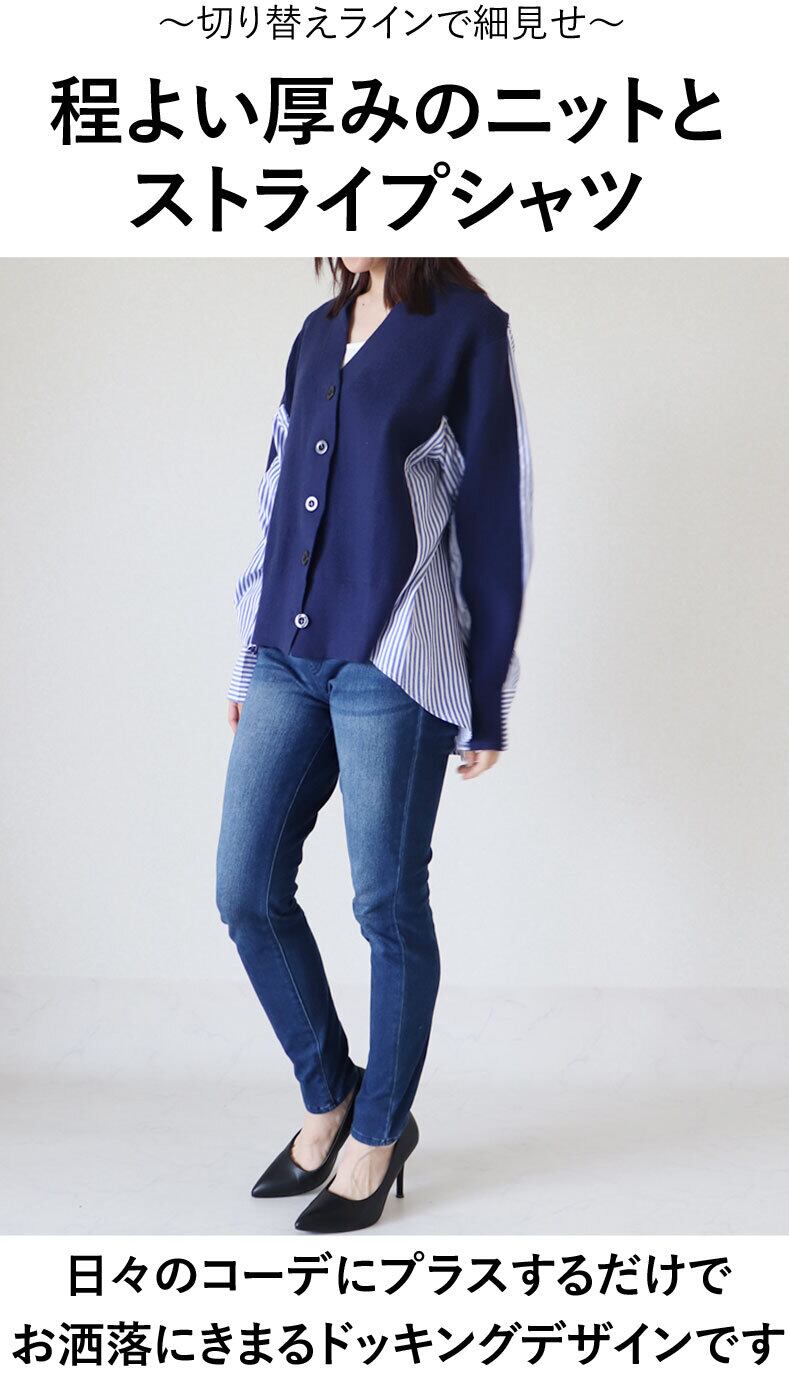 【再入荷11/8】羽織り カーディガン トップス ニット ストライプ シャツ 爽やか 清楚 綺麗め カジュアル レディース ファッション「ニットと ストライプシャツの ドッキング羽織り」da10160