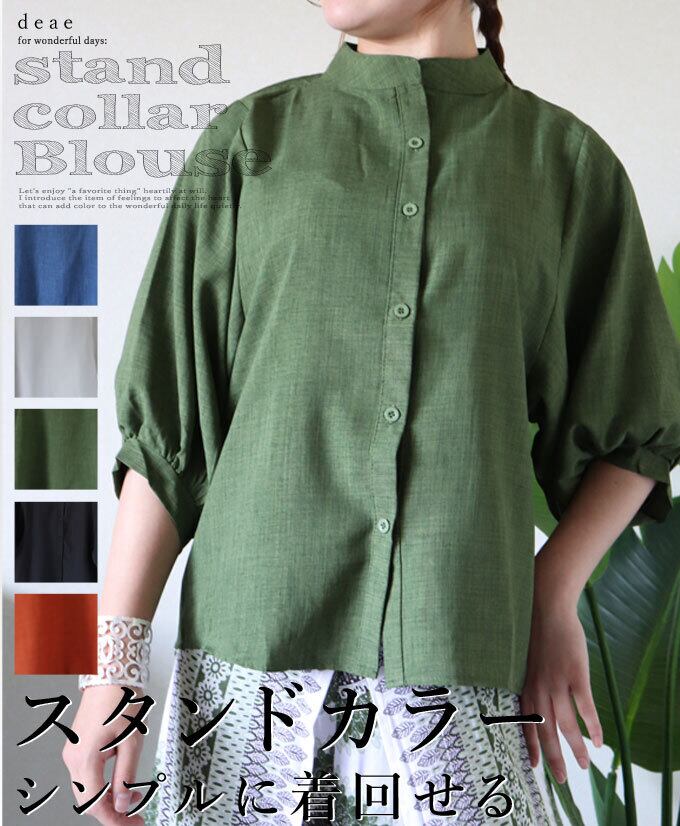 トップス スタンドカラー 5分袖 ブラウス ふんわり袖 ゆったり リラックス 羽織りレディース 夏 春 秋 ファッション 着回し カジュアル 「シンプルに着回せる すっきりスタンドカラーのトップス」da10492