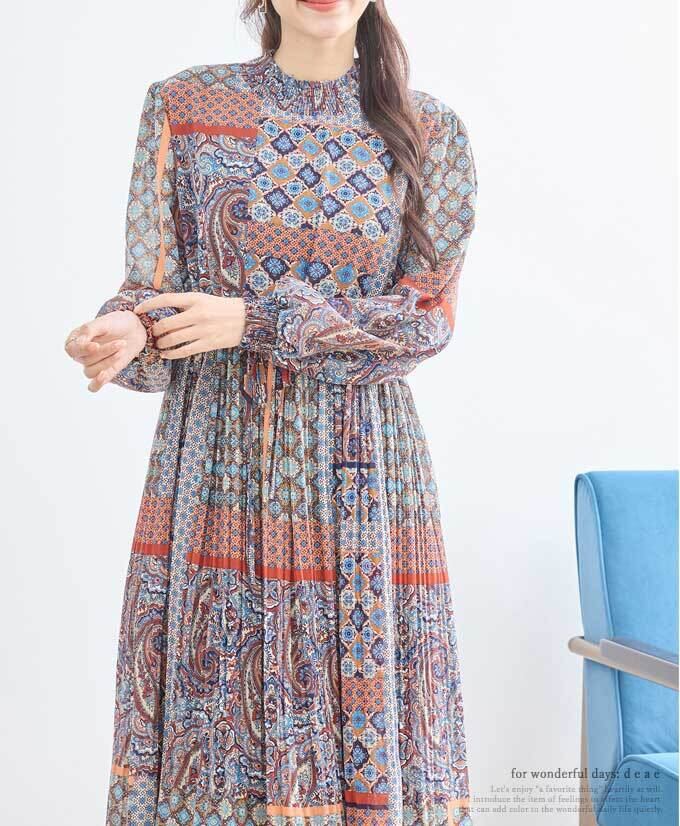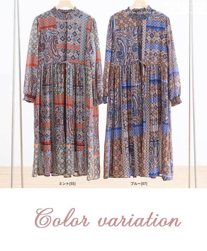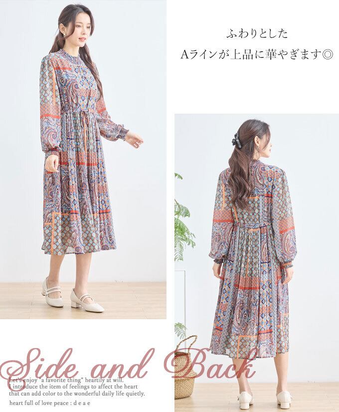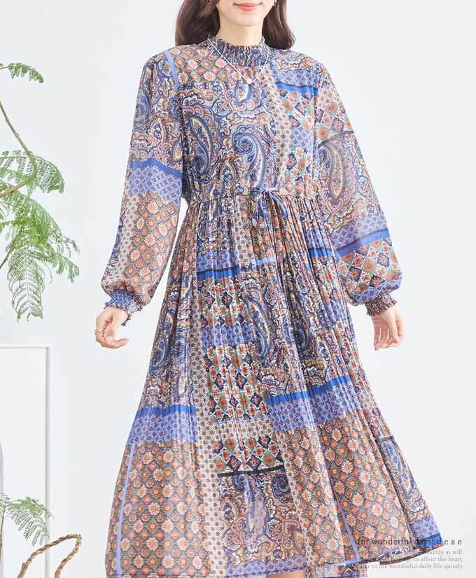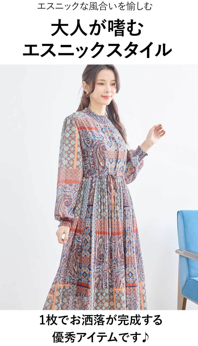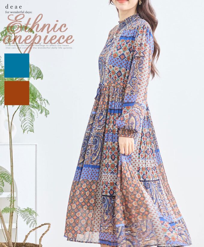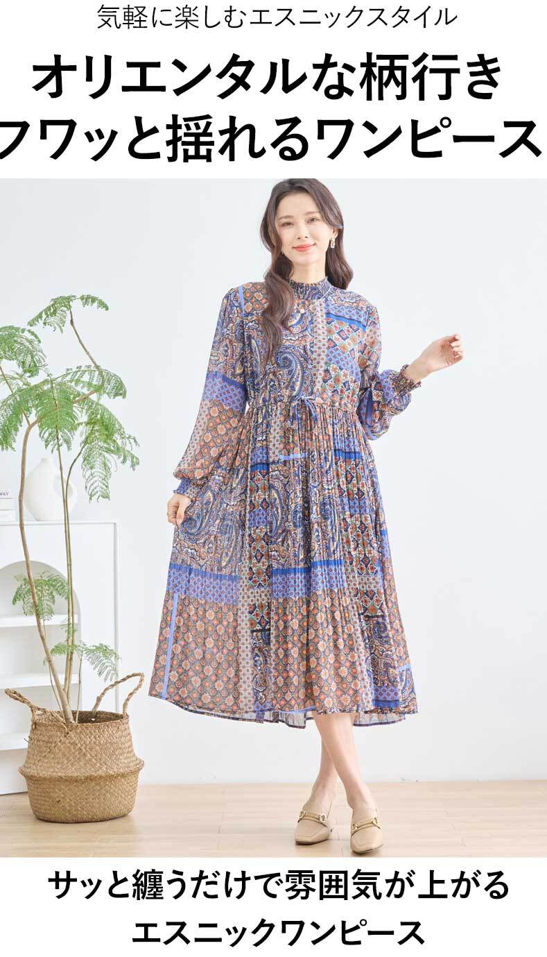 ワンピース エスニック アジアン オリエンタル Aライン フレア ふんわり袖 カジュアル レディース 春 夏 秋 ファッション 「大人が嗜む エスニックワンピース」db10200