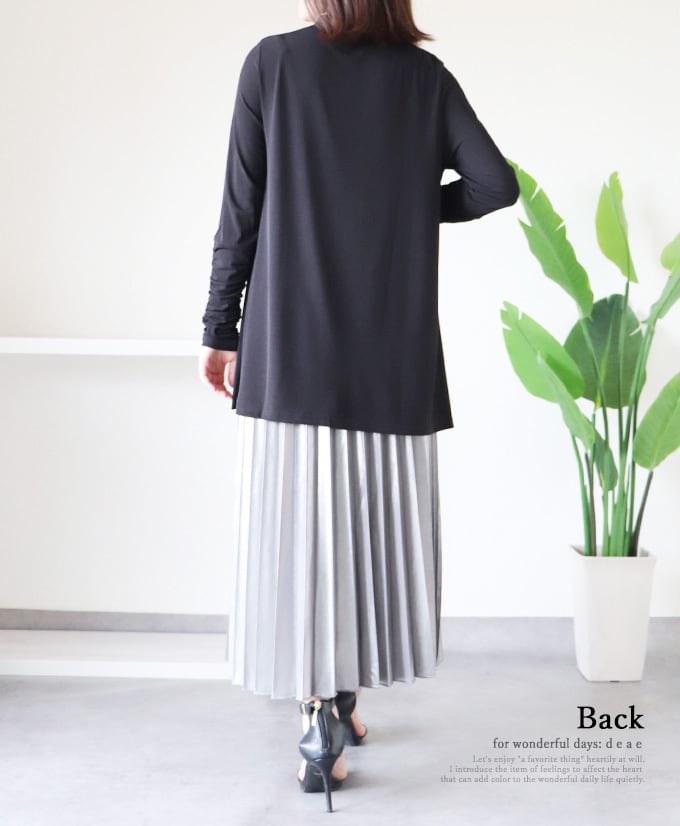 【再入荷1/20】トップス 長袖 カットソー 袖くしゅくしゅ ボトルネック オフネック ストレッチ 着回し 重ね着 レディース 春 夏 秋 冬 オールシーズン ファッション カジュアル モード「オールシーズン着回せる 袖長めのくしゅくしゅカットソー」da10452