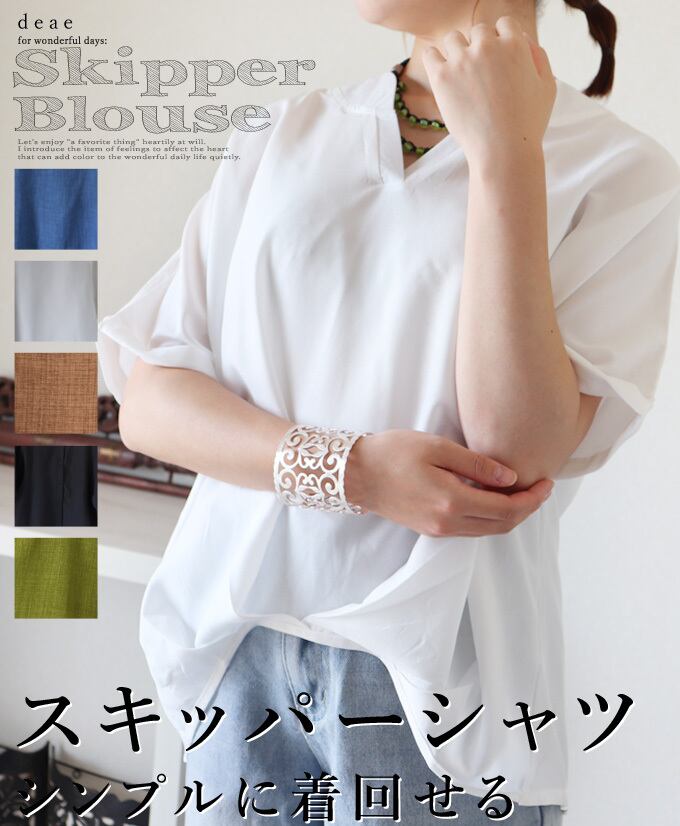 トップス スキッパーシャツ 半袖 Vネック ゆったり リラックス りレディース 夏 春 秋 ファッション 着回し カジュアル 「シンプルに着回せる すっきりスキッパーVネックのトップス」da10493