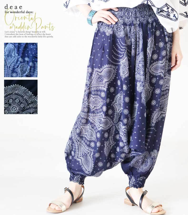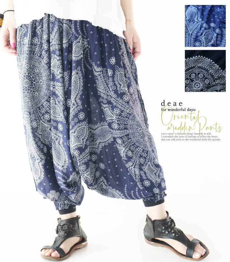 アラジンパンツ サルエルパンツ オリエンタル レディース 夏 春 ファッション エスニック アジアン カジュアル お洒落 可愛い「シックなオリエンタル柄を愉しむ 大人のアラジンパンツ」dc10117