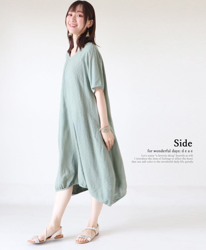 ワンピース 半袖 コクーンシルエット チュニック 綿100 レディース 夏 春 秋ファッション 大人ナチュラル カジュアル「ナチュラルな風合いの チュニックにもなる コットンコクーンワンピース」db10121