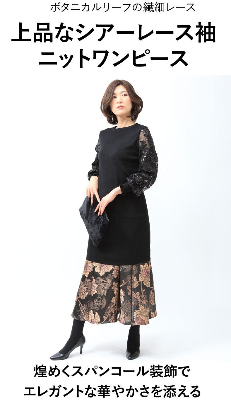 【検索ワード】レディース ファッション DEAE ニット ワンピース ふんわり袖 レース袖 シアー ボタニカル レース スパンコール 煌めき 上品 フェミニン エレガント きれいめ キレイめ シンプル ママ ミセス 30代 40代 50代 M L フリーサイズ フリー 低身長 高身長 小柄 大柄 細身 標準サイズ F M L 2L 3L XL LL30代ファッション 40代ファッション 50代ファッション 60代ファッション きれいめ 上品 ミセス ブラック グレー