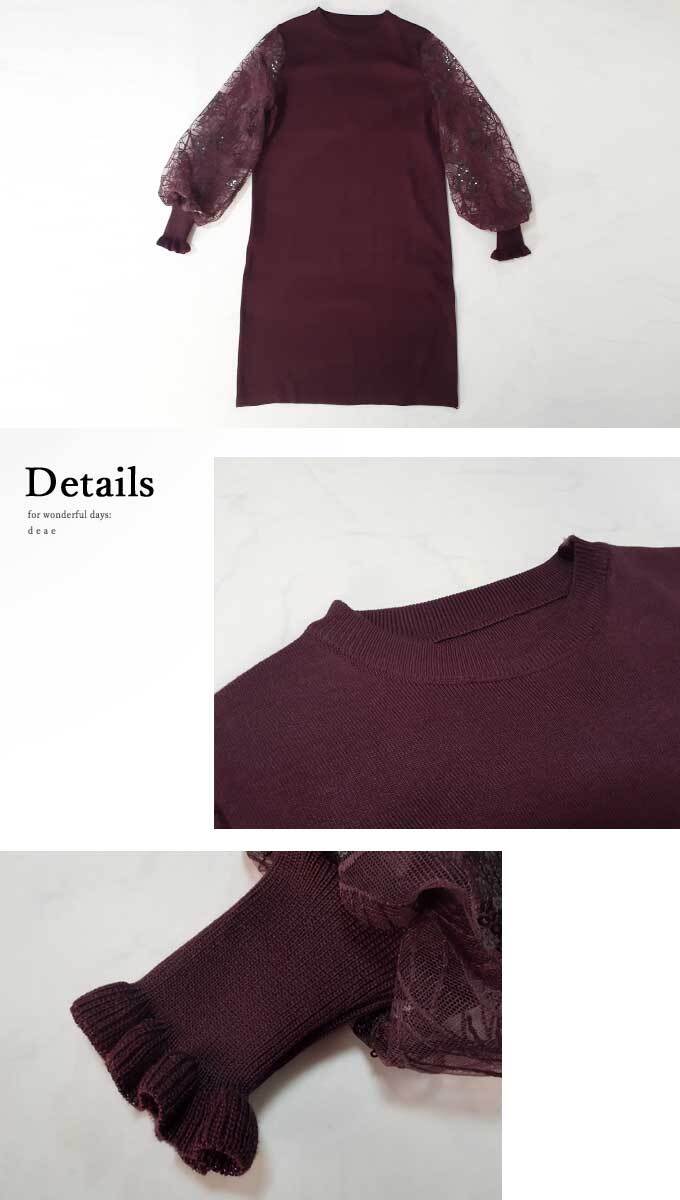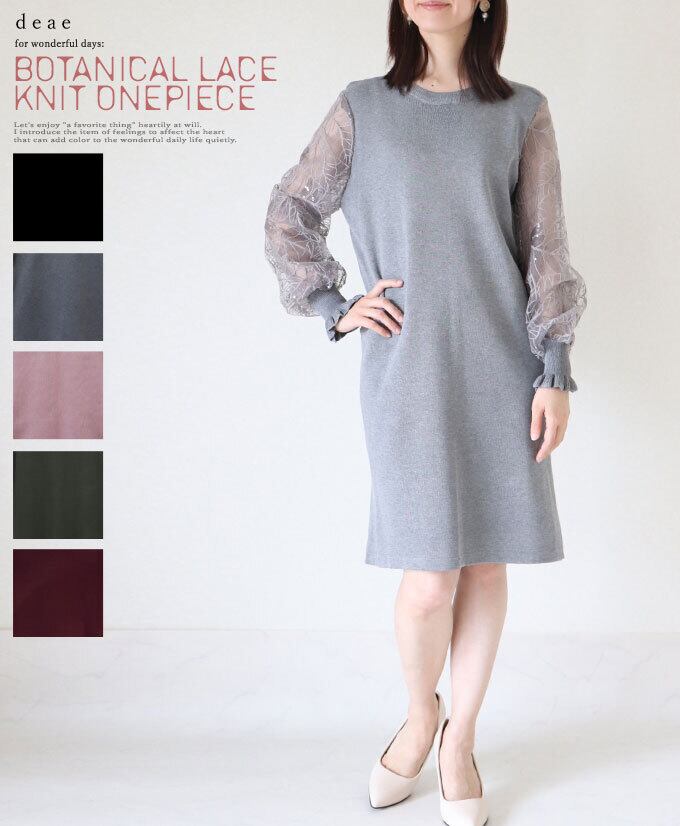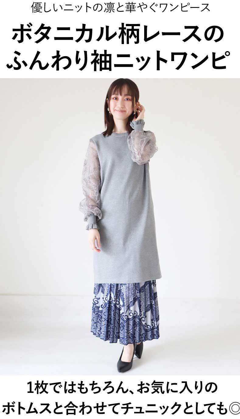 【検索ワード】ニット ワンピース ミディアム丈 長袖 ボタニカル柄レース ふんわり袖 シアー 煌めき エレガント 綺麗め カジュアル 上品 チュニック レディース ファッション 上品 フェミニン カジュアル デザイン お洒落 オシャレ 可愛い かわいい 大人 オフィス エレガント ベーシック ママ ミセス 30代 40代 50代 春 秋 春服 春物 オフィスカジュアル M L フリーサイズ フリー 低身長 高身長 小柄 大柄 細身 標準サイズ F サイズ自由 M L 2L 3L XL LL30代ファッション 40代ファッション 50代ファッション 60代ファッション きれいめ 上品 大人可愛い 大人 可愛い かわいい おしゃれ ミセス ブラック グレー ピンク ワイン グリーン