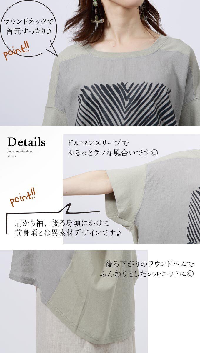 【再入荷3/23】【ミント】ドルマン シルエット Tシャツ トップス レディース 半袖 綿 コットン ナチュラル カジュアル エスニック カジュアル トップス 30代 40代 50代 60代da10107