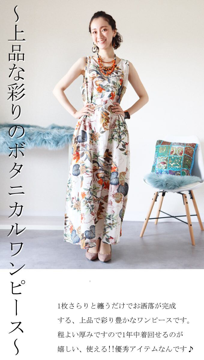 【再入荷3/23】ワンピース ロング ノースリーブ ボタニカル柄 花柄 草木柄 ロング丈 レディース ファッション 大人ナチュラル カジュアル お洒落 綺麗め 可愛い 上品 華やかdb10153