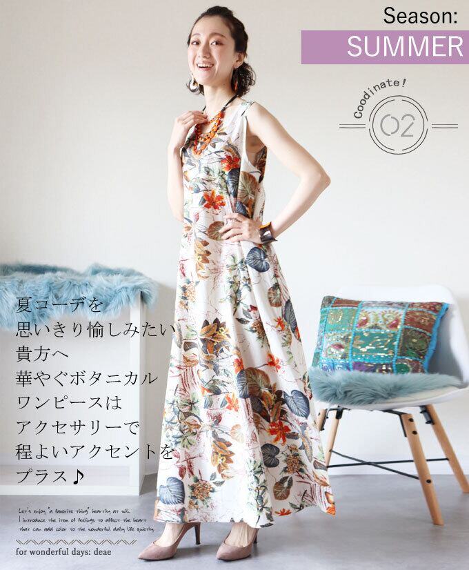 【検索ワード】ワンピース ロング ノースリーブ ボタニカル柄 花柄 草木柄 ロング丈 レディース ファッション 大人ナチュラル カジュアル お洒落 綺麗め 可愛い 上品 華やか 30代 40代 50代 60代 ワンピース ボタニカル オールシーズン