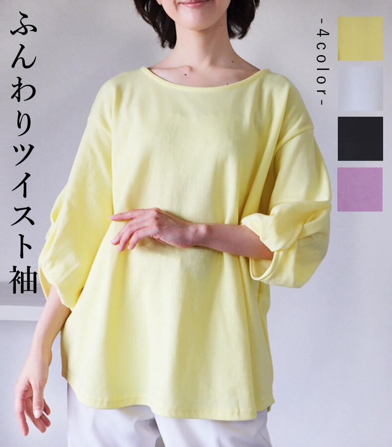 【検索ワード】トップス レディース 春 夏 七分袖 パステルカラー ふんわり袖 カジュアル きれいめ ぽわん袖 パステルイエロー ライトパープル ホワイト ブラック 30代 40代 50代 60代 ファッション カットソー Tシャツ プルオーバー 春夏 綺麗め カジュアル