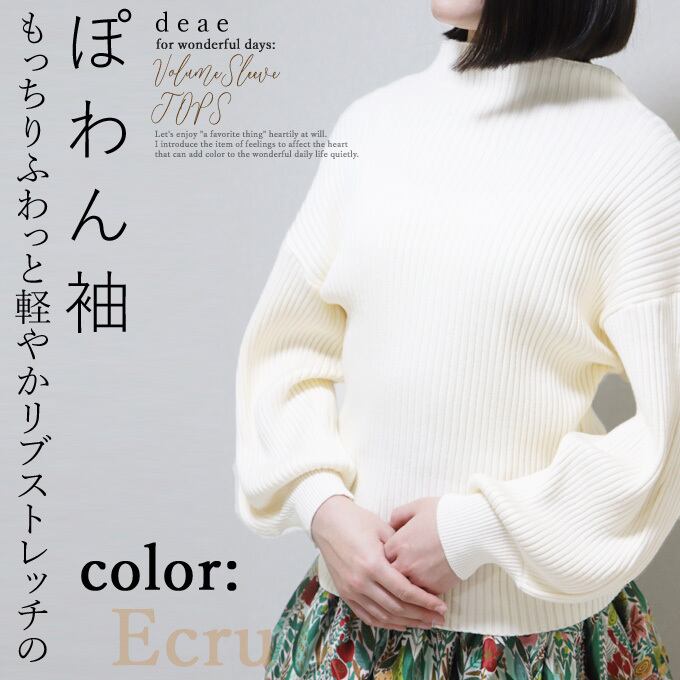 【再入荷11/1】レディース トップス カットソー 長袖 ふんわり袖 ぽわん袖 ボリューム袖 ポワン袖 きれいめ プルオーバー ブラック 黒 春 秋 冬 大人 カジュアル お洒落 可愛い 「もっちりふわっと軽やかリブストレッチの上品ポワン袖トップス」da10112