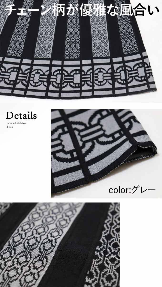 【再入荷3/10】ニットスカート スカート プリーツ タイル柄 綺麗め チェーン柄 レディース ファッション ブラック グレー ベージュ 大人 カジュアル お洒落 きれいめ ナチュラル 華やか 「優雅なプリーツ風 ニットスカート」dc10112