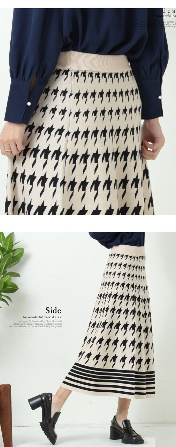 ニットスカート チェック スカート フレア ニット スカート 千鳥 格子 ボーダー 華やか カジュアル 綺麗め 上品「穿くだけで美シルエット 千鳥とボーダーの華やかニットスカート」dc10197