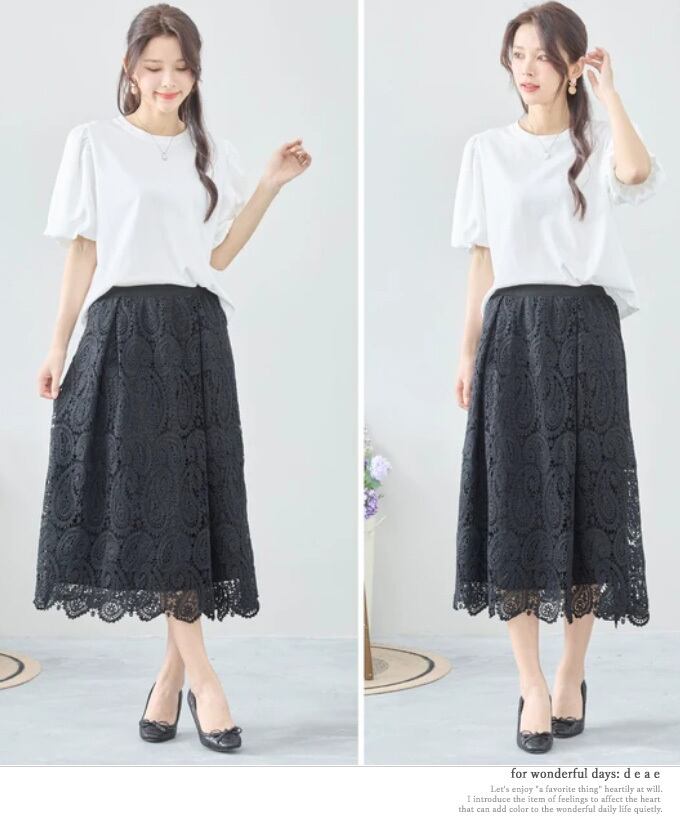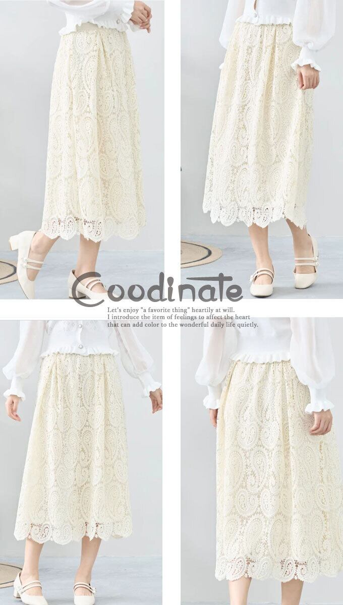 【再入荷2/21】スカート ロング丈 レーススカート ペイズリー 繊細レース フェミニン 綺麗め お洒落 上品 カジュアル レディース「上品に華やぐペイズリーのレーススカート」dc10273