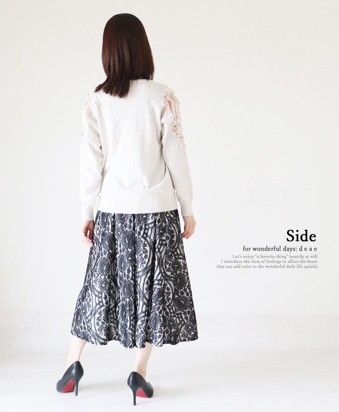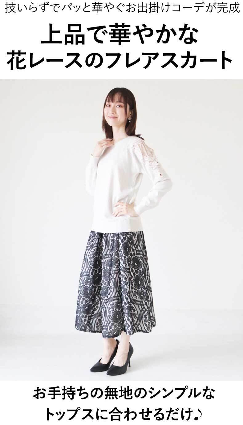 スカート レース ミディアム丈 ミモレ丈 上品 綺麗め フォーマル エレガント フレア レディース ファッション 「上品花レースのフレアスカート」dc10128