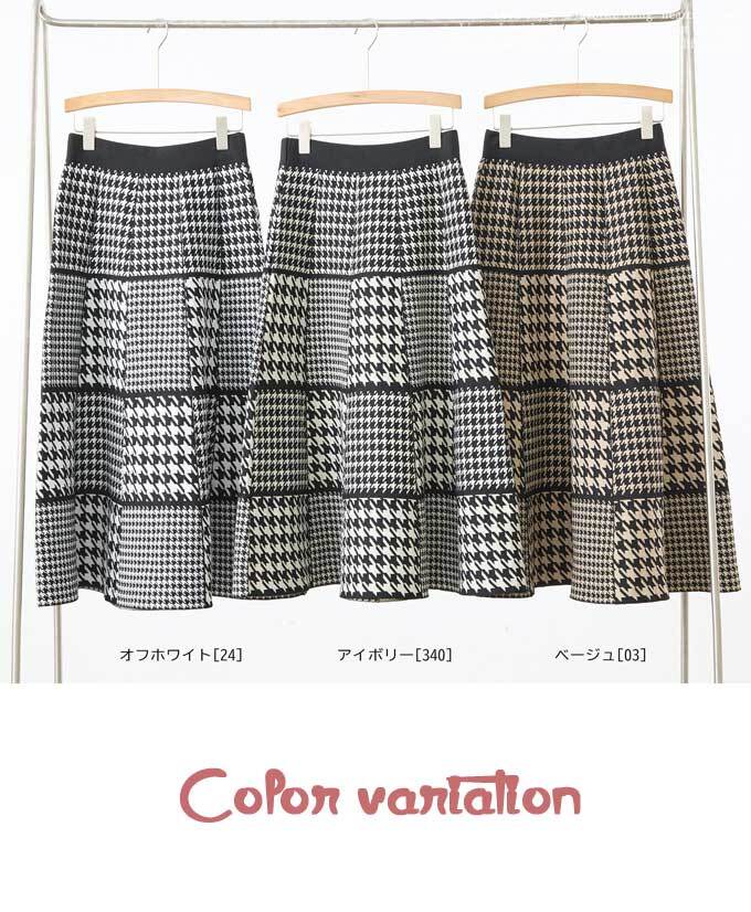 ニットスカート チェック フレア Aライン ミディアム丈 千鳥 格子 パッチワーク風 レディース 上品 綺麗め カジュアル 「パッチワーク風千鳥格子のニットスカート」dc10201