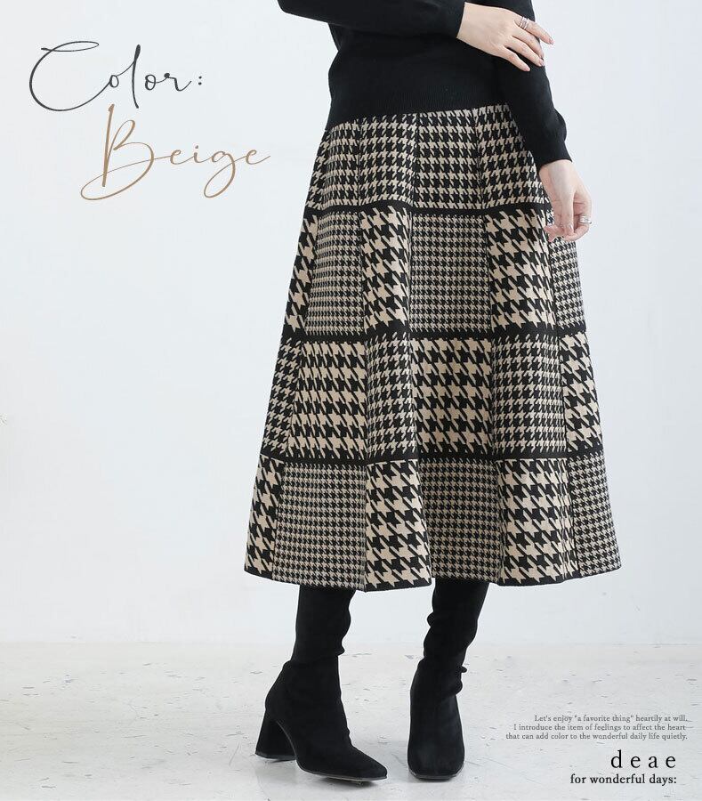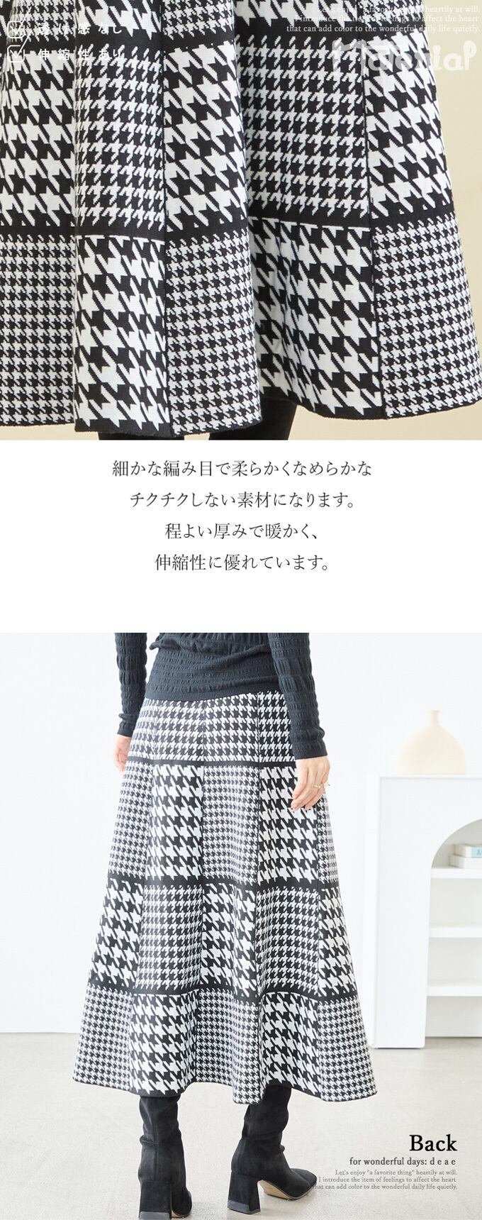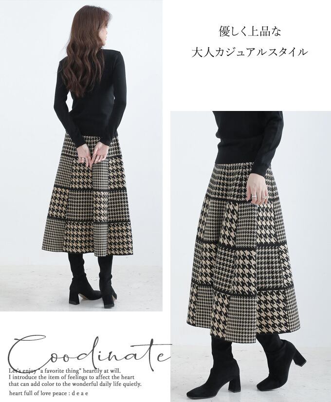 【検索ワード】ニットスカート フレア Aライン ミディアム丈 千鳥格子 パッチワーク風 レディース 上品 綺麗め カジュアル 「パッチワーク風千鳥格子のニットスカート」 エレガント ベーシック カジュアル おしゃれ オシャレ お洒落 定番 ベーシック 上品 女性らしい デザイン きれいめ キレイめ シンプル フェミニン 春 秋 春服 春物 冬 冬物 着回し レディース レディースファッション 大人 ママ ミセス S M L 小さめサイズ小さい 小さいサイズ 低身長 小柄 細身 標準サイズ 大きめシルエット 大きめサイズ 大きめ 大きい ゆったり 綺麗め カジュアル 30代 40代 50代 60代 お洒落 可愛い ニットスカート ブラック アイボリー ホワイト ベージュ