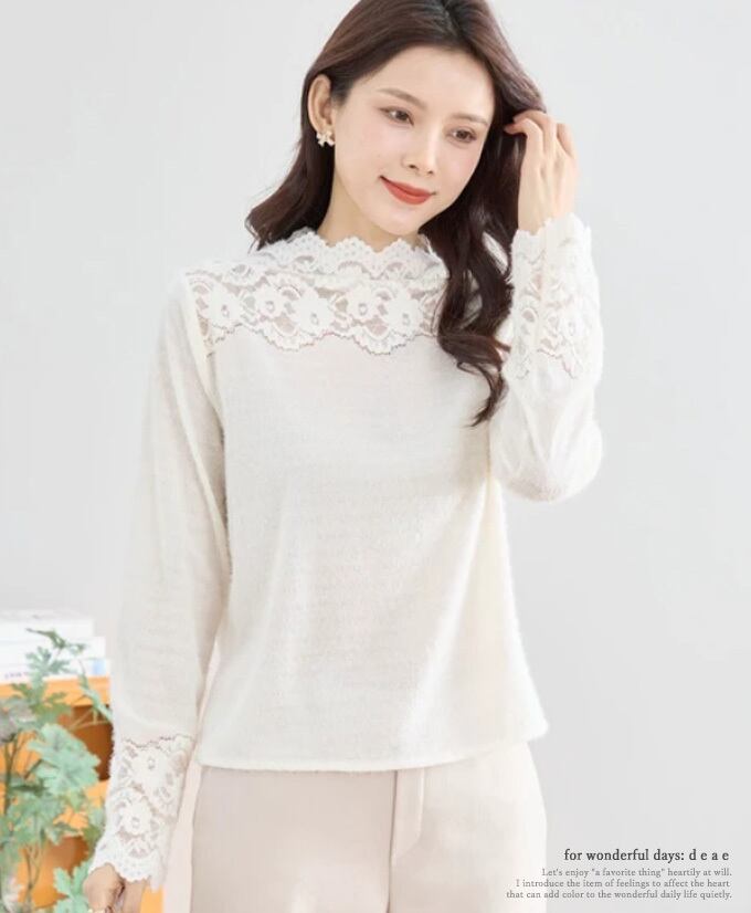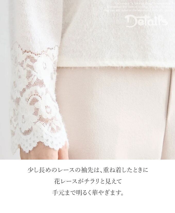 【再入荷1/25】トップス オフネック 長袖 カットソー 重ね着 デコルテ 袖先 花レース 上品 華やか 着回し レディース 春 秋 冬 ファッション カジュアル 綺麗め お洒落「1枚でも重ね着でも デコルテと袖先 花レースで華やぐ長袖カットソー」da10521