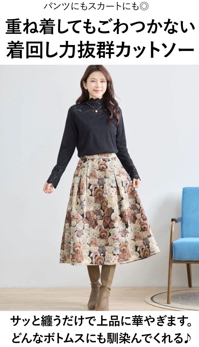 【検索ワード】トップス オフネック 長袖 カットソー 重ね着 デコルテ 袖先 花レース 上品 華やか 着回し レディース 春 秋 冬 ファッション カジュアル 綺麗め お洒落「1枚でも重ね着でも デコルテと袖先 花レースで華やぐ長袖カットソー」エレガント ベーシック カジュアル おしゃれ オシャレ お洒落 定番 ベーシック 上品 女性らしい デザイン きれいめ キレイめ シンプル フェミニン 春 秋 春服 春物 夏 夏物 着回し レディース レディースファッション 大人 ママ ミセス S M L 小さめサイズ小さい 小さいサイズ 低身長 小柄 細身 標準サイズ 大きめシルエット 大きめサイズ 大きめ 大きい ゆったり 綺麗め カジュアル 花レース 長袖 カットソー 30代 40代 50代 60代 ブラック ホワイト アイボリー グレー ベージュ グリーン