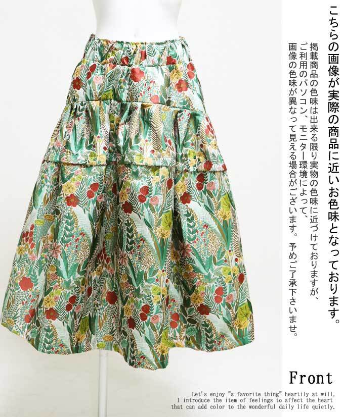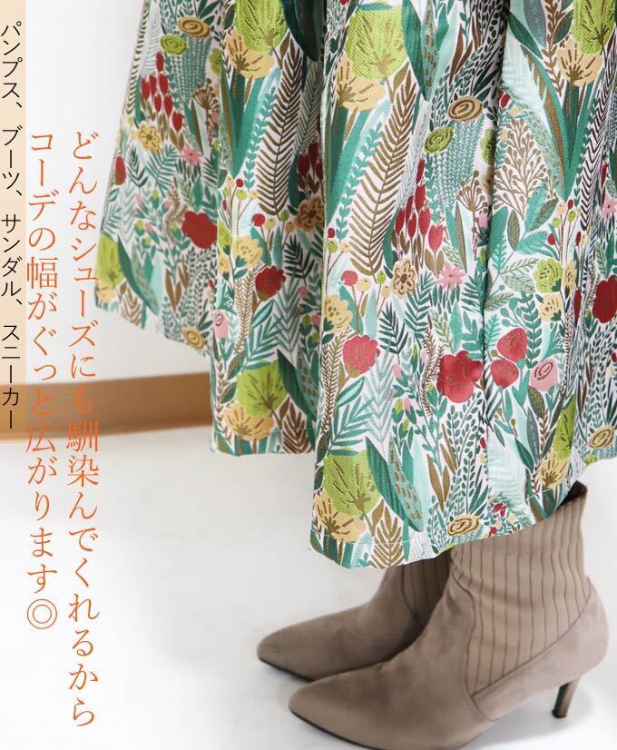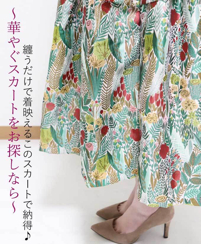 スカート ひざ丈 レディース 春 秋 夏 冬 オールシーズン ふんわりシルエット 華やか 上品 総刺繍 花刺繍 綺麗め きれいめ フェミニン 「咲き誇る花刺繍のふんわりスカート」dc10102