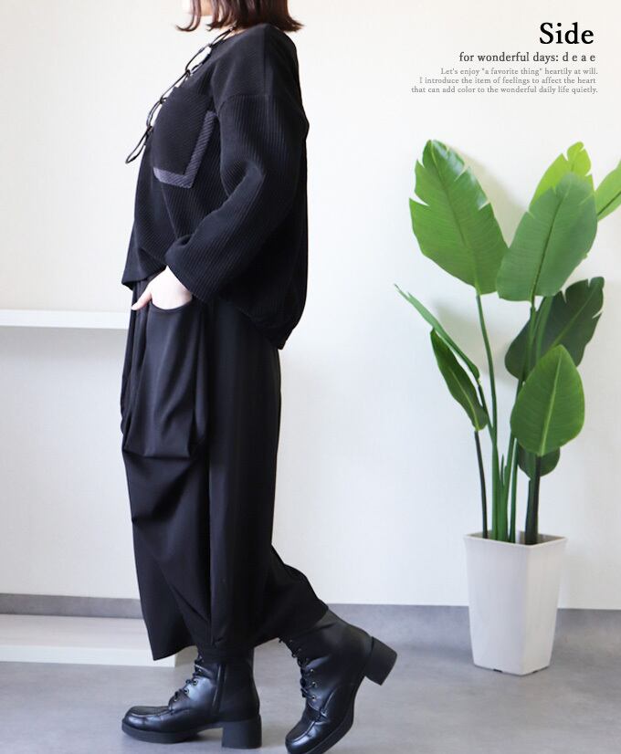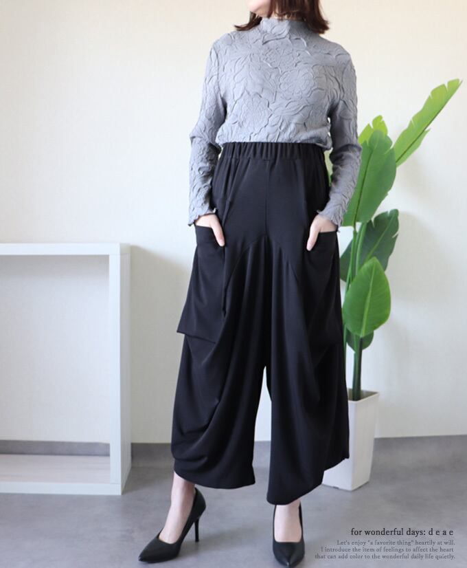 パンツ サルエルパンツ モード ブラック 黒 シルエットパンツ ゆったり お洒落 上品 カジュアル レディース ストレッチ ウェストゴム「大人が嗜む エレガントなサルエルパンツ」dc10267