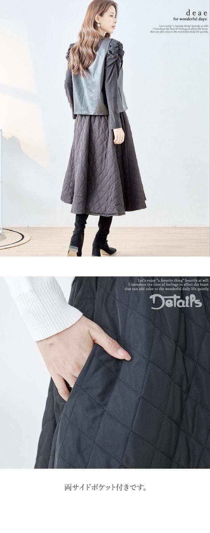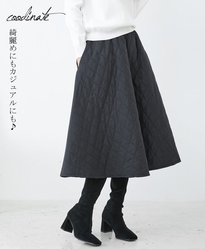 キルティング スカート ミディアム丈 レディース フレア A ライン スカート 上品 綺麗め カジュアル 「綺麗めもカジュアルも 上品フレアのキルティングスカート」dc10204