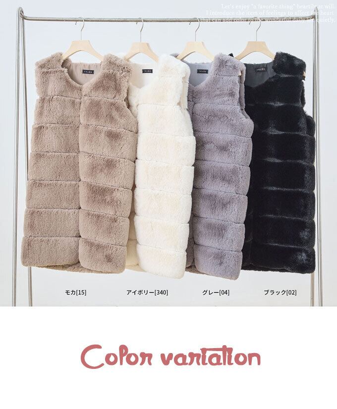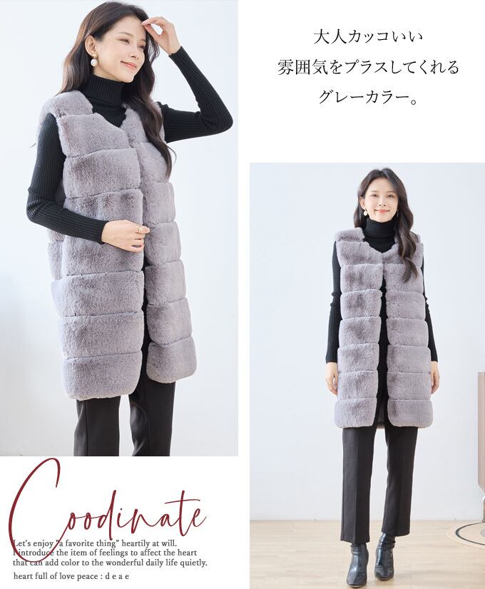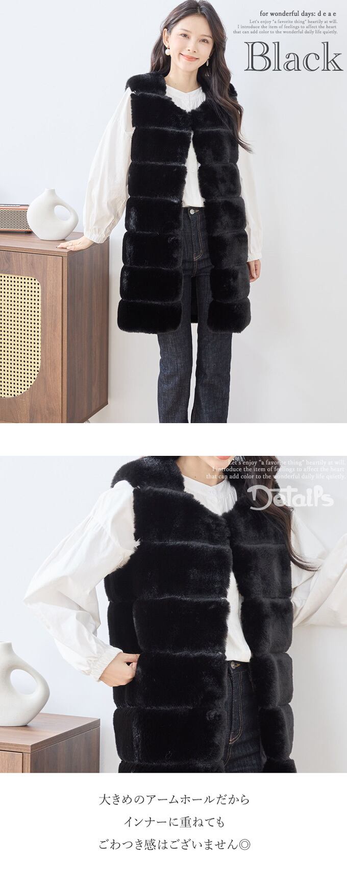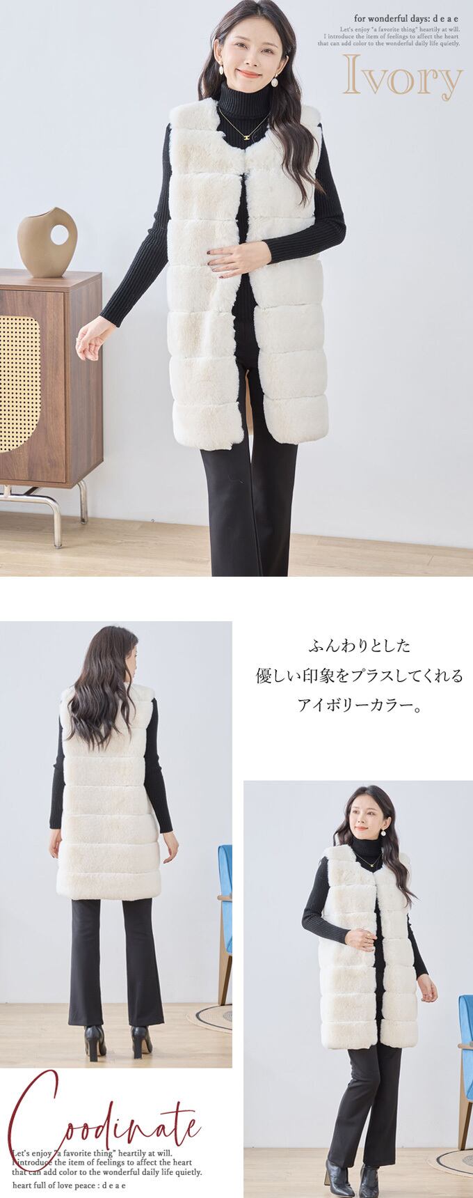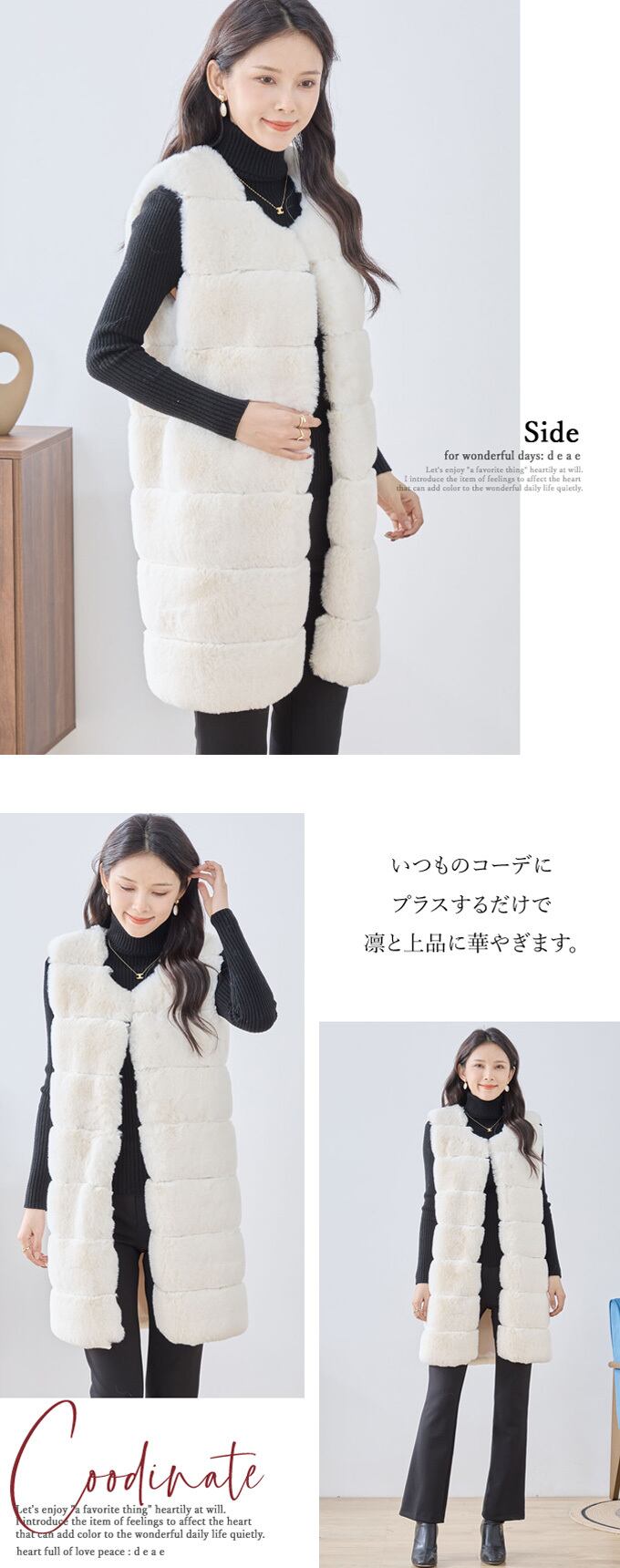 ロング丈 フェイクファー エコファー ベスト ふわもこ ラグジュアリー 華やか 上品 綺麗めカジュアル「品良く華やぐ ふわっふわエコファーのロング丈ベスト」da10304