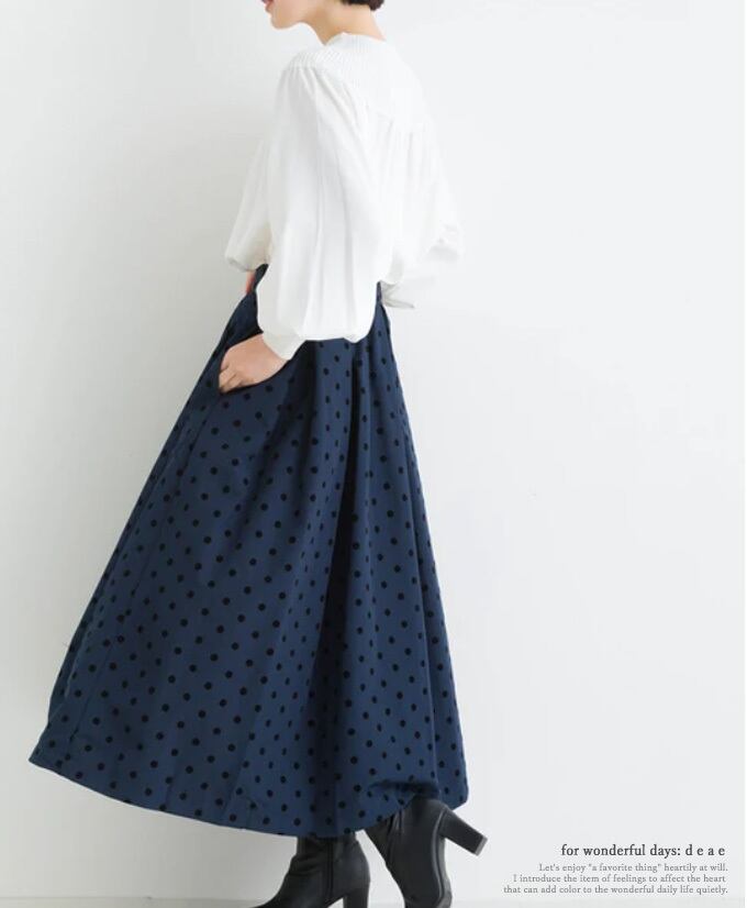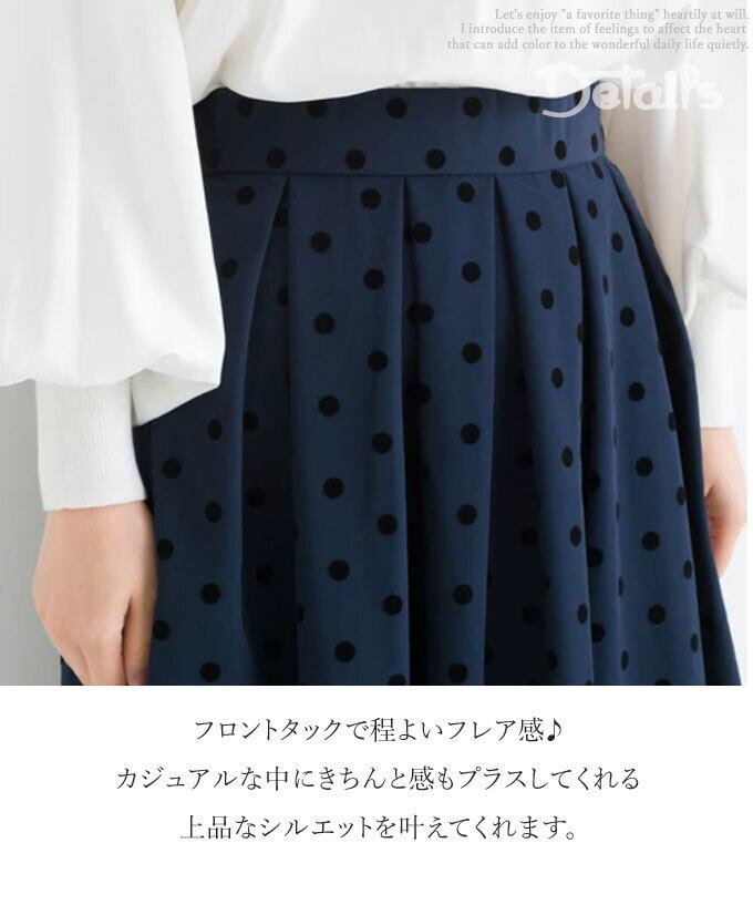 フロッキー ドット 水玉 タック フレアスカート ロング丈 入学式 卒業式 入園式 卒園式 レディース 母 30代 40代 50代 ママ 七五三 お宮参り セレモニー フォーマル 上品 きれいめ 大人カジュアル お洒落 モードカジュアルdc10246