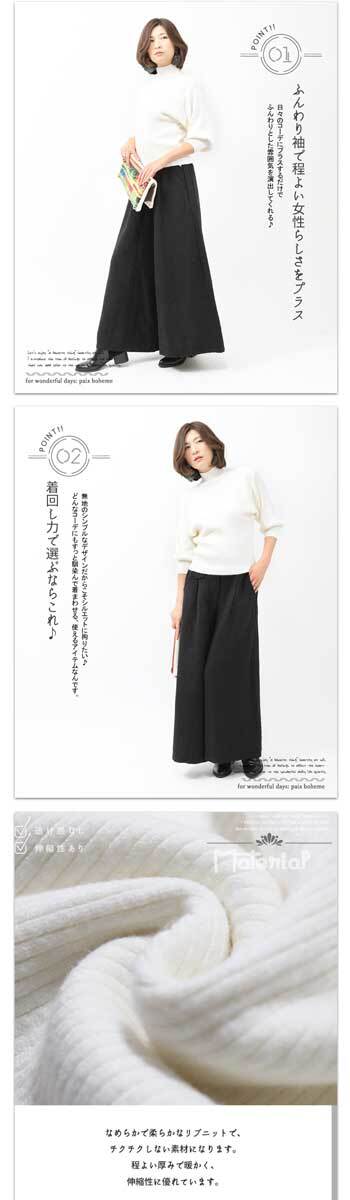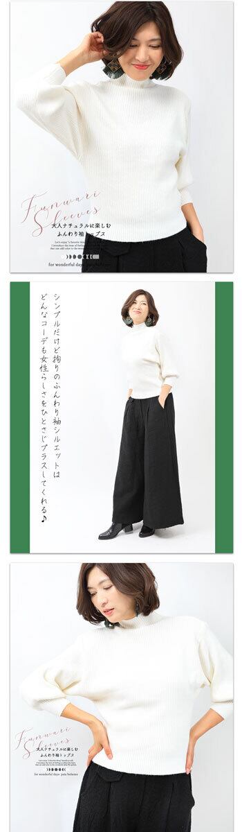 トップス【ホワイト】DEAE 大人ナチュラルに楽しむ<br>ふんわり袖トップス/ふんわり袖/オフネック/ハイネック/リブ/ニット/上品/きれいめ/カジュアル/着回し力/ぽわん/ドロップショルダー/pb818