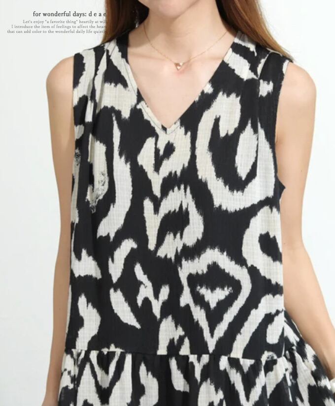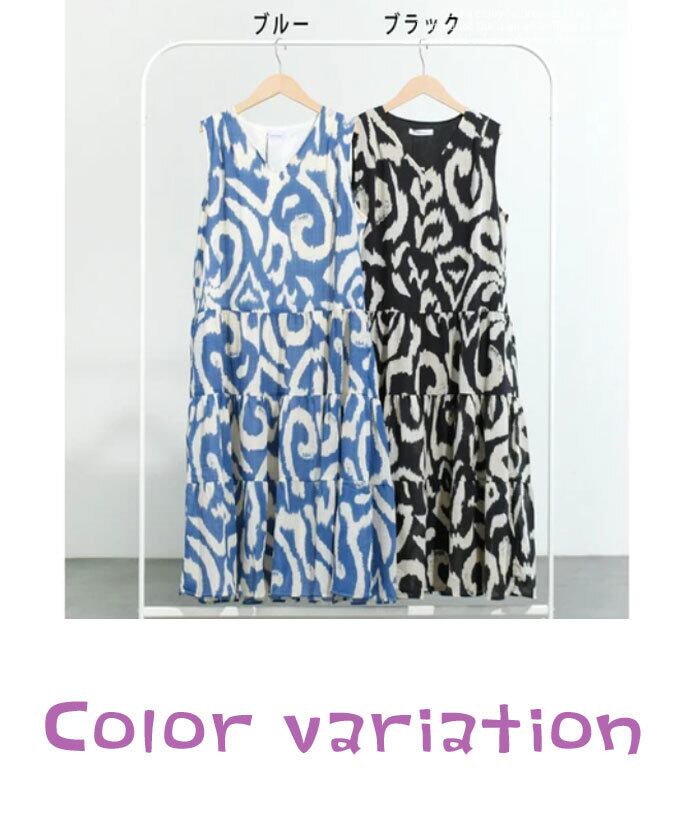 ワンピース フレア 春夏秋 ノースリーブ ティアードワンピース エキゾチック柄 オリエンタル 上品 綺麗め お洒落 カジュアル レディース「サッと纏ってパッと着映える 大判柄ティアードワンピース」db10192