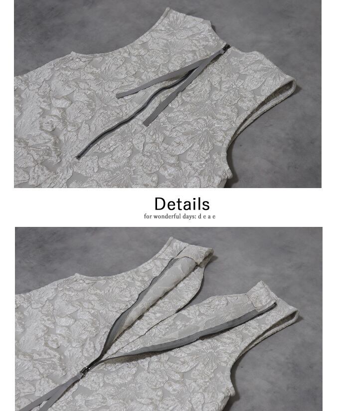 フクレ 花柄 花柄 ジャガードワンピース ノースリーブ ミディアム丈 Aライン フレアワンピース 艶やか 上品 凛と華やか フォーマルドレス パールポケット「ふっくら艶やかな花柄ジャガード ノースリーブワンピース」db10161