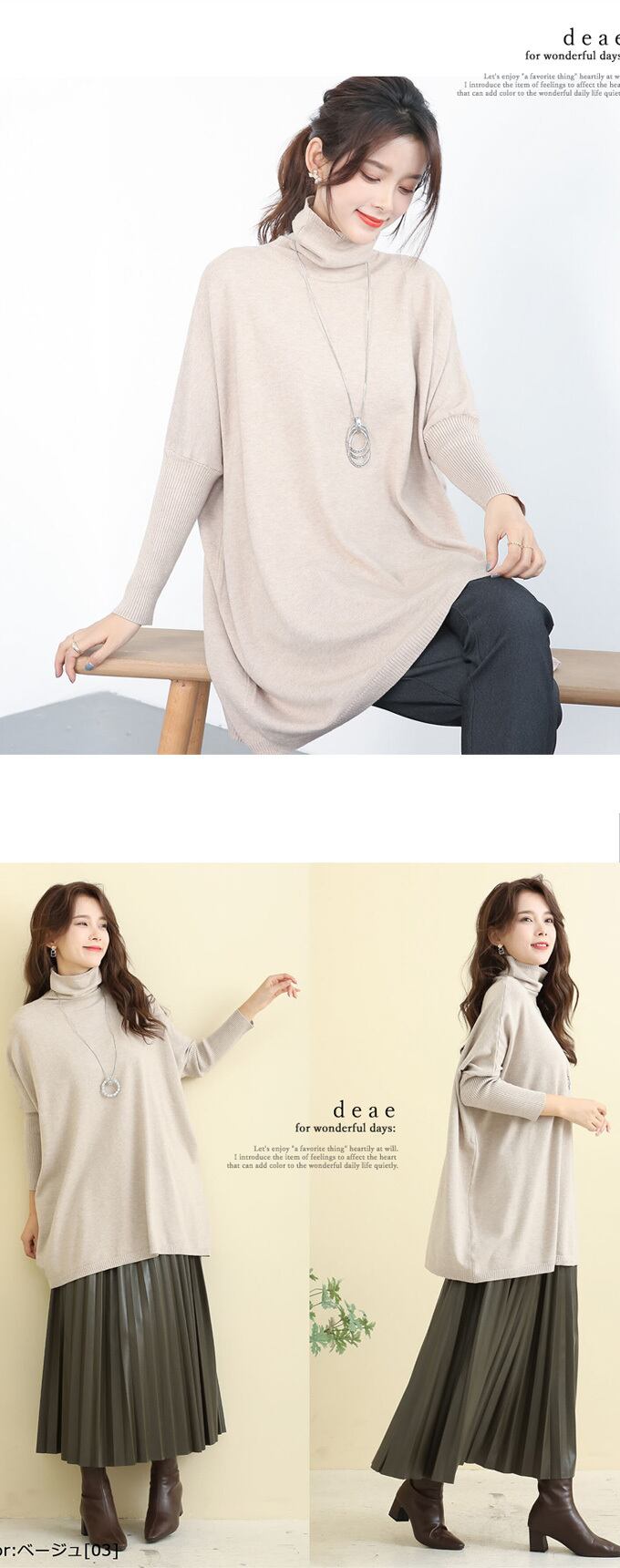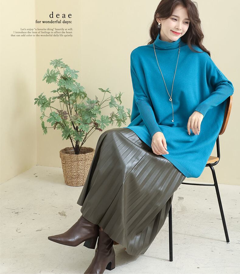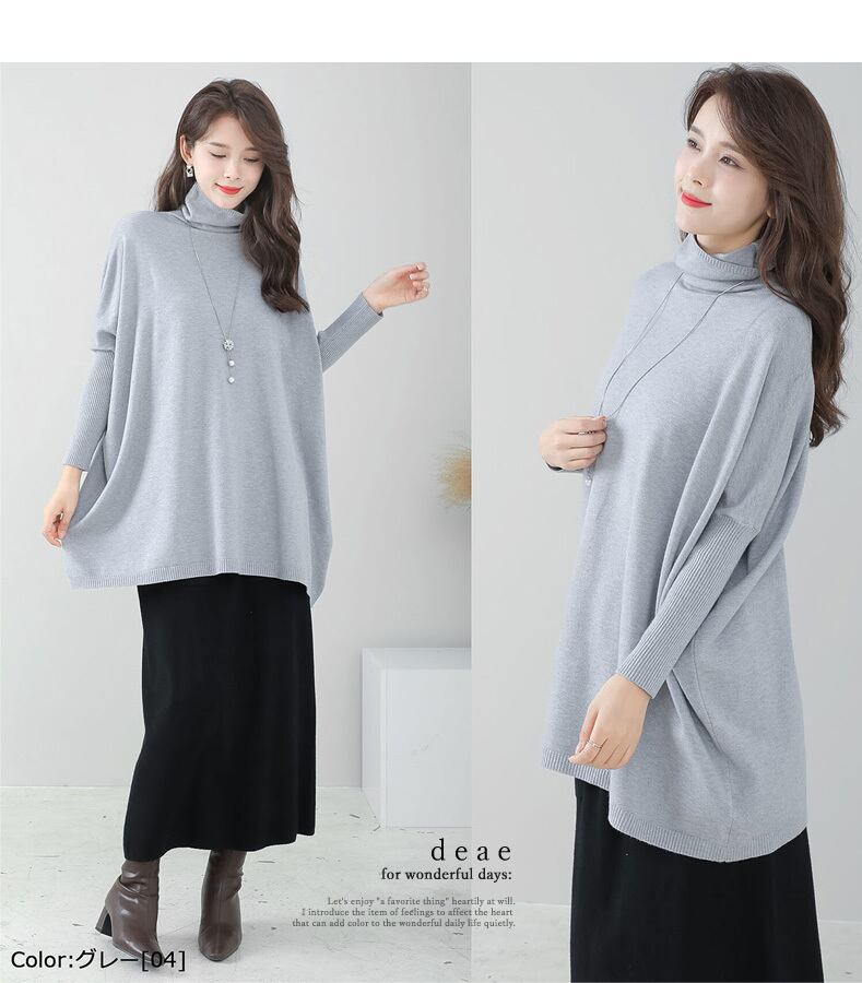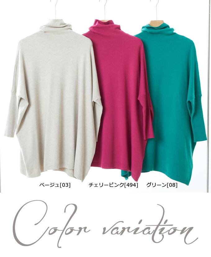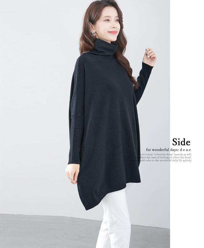 ニット トップス プルオーバー 長袖 チュニック丈 オフネック ハイネック ゆったり カジュアル 上品 綺麗め「着心地ゆったり なのにすっきり見せが叶う ドルマンスリーブ 長袖トップス」da10263