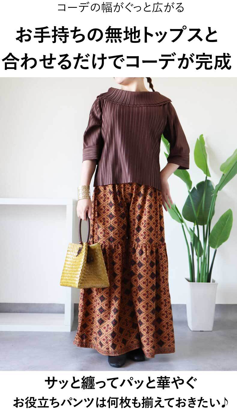 【検索ワード】パンツ フレアパンツ ワイドパンツ イカット風 総柄 ボヘミアン アジアンテイスト レディース 夏 春 秋 ファッション オリエンタル エスニック カジュアル「オリエンタルな風吹く イカット風フレアパンツ」 フレア ワイド パンツ 30代 40代 50代 60代