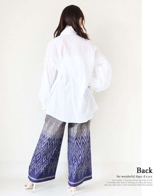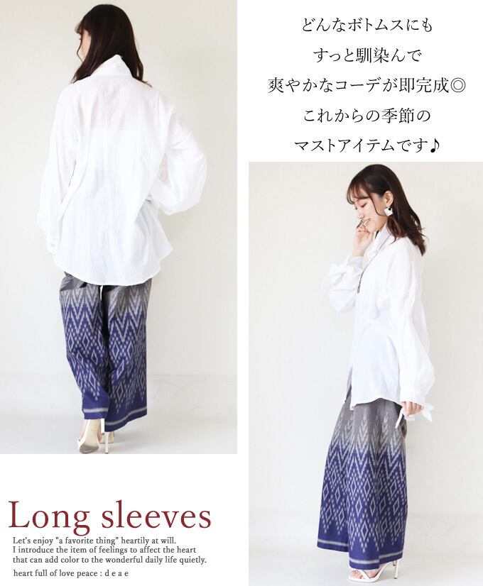 シャツ ブラウス ミドル丈 ふんわり袖 リボン袖 レディース ファッション 春 夏 秋 長袖 カジュアル 爽やか「爽やかカジュアル 上品なふんわり袖リボンが大人可愛い 着回しトップス」da10202