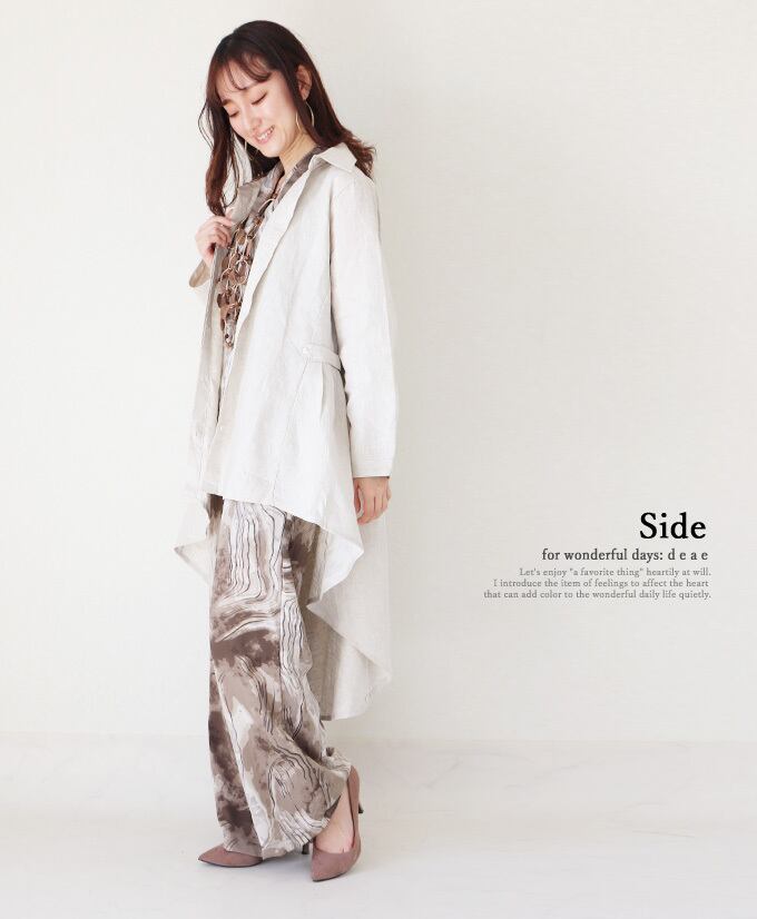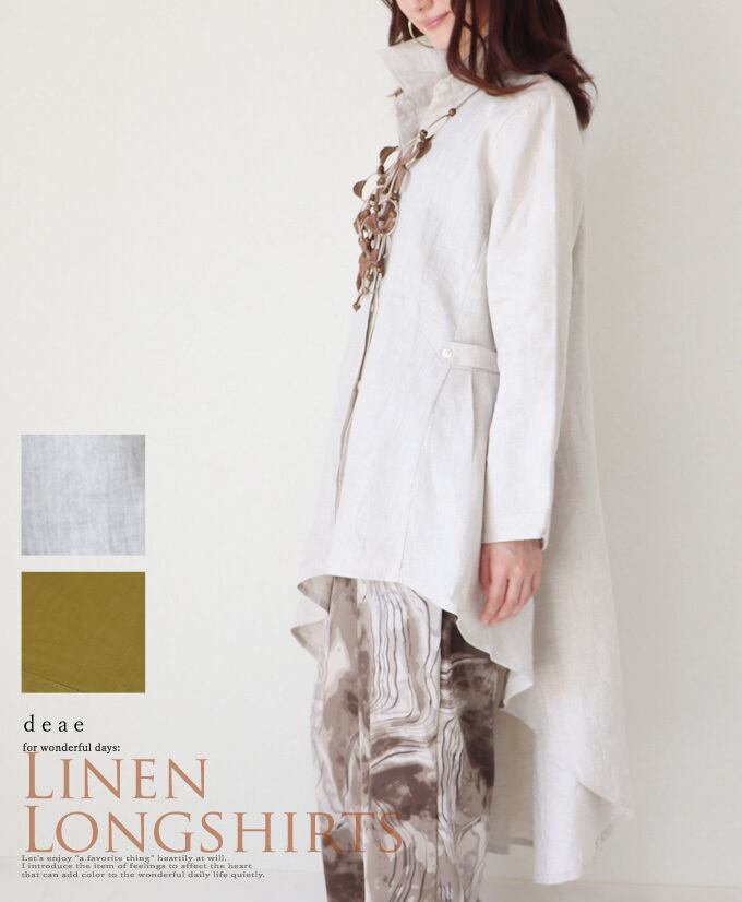 シャツ ブラウス 羽織り カーディガン ミドル丈 シャツ レディース ファッション リネン 春 夏 秋 長袖 大人ナチュラル カジュアル お洒落 上品 華やか 比翼ボタン 「自然の風合いを楽しむ ヒップまですっぽり隠れる 羽織りにもなる 後ろ下がりのリネンシャツ」da10192