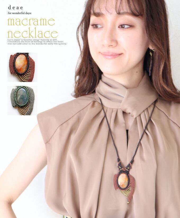 ネックレス マクラメ編み 天然石 ハンドメイド 手作り エスニック トライバル 大人ナチュラル オリエンタル レディース ファッション 春 夏 秋 冬 オールシーズン 「オリエンタルな風合い マクラメ編みのアシンメトリーネックレス」dz10208