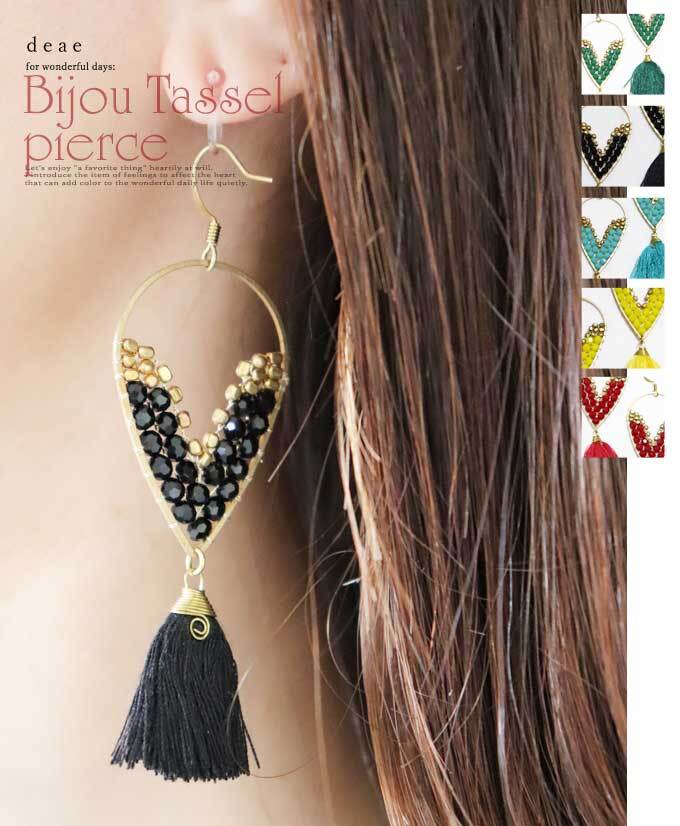 ピアス 金属アレルギー対応 ビジュー タッセル ハンドメイド 手作り エスニック トライバル 大人ナチュラル オリエンタル レディース ファッション 春 夏 秋 冬 オールシーズン 「オリエンタルに煌めくビジューとタッセルのアクセントピアス」dz10201
