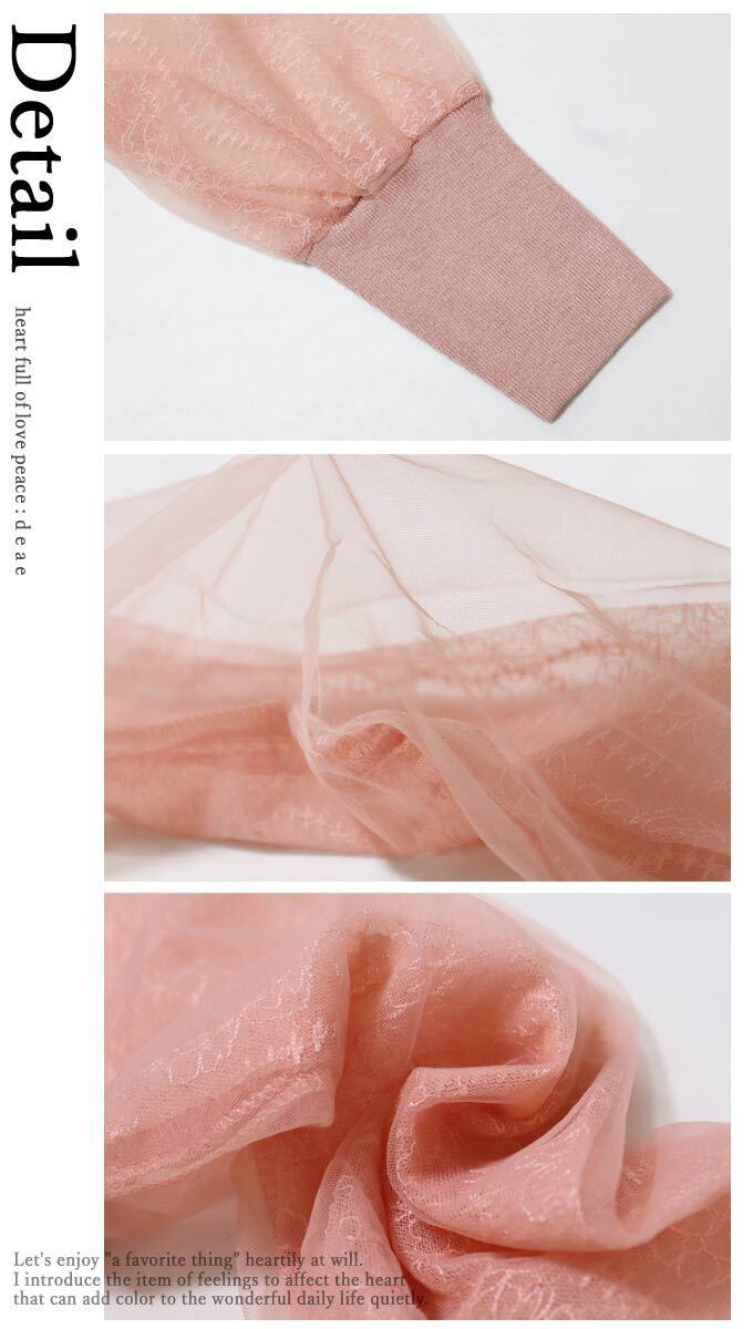 【検索ワード】トップス ニット 長袖 カットソー プルオーバー 袖レース チュール 繊細レース 透け袖 シアー袖 ふんわり袖 カジュアル 上品 パール レディース ファッション 30代ファッション 40代ファッション 50代ファッション 60代ファッション きれいめ 上品 おしゃれ ミセス グレー ブラック ホワイト ベージュ ピンク