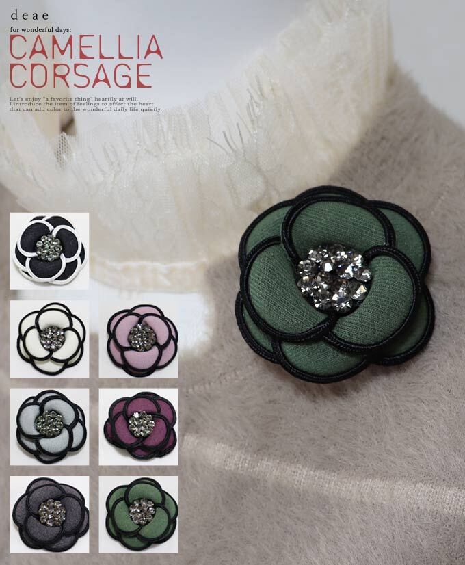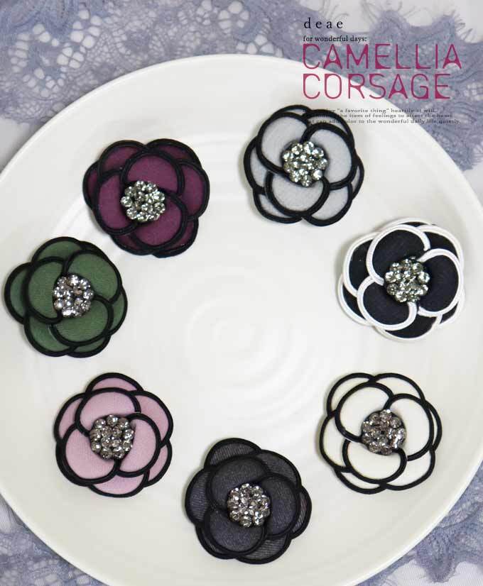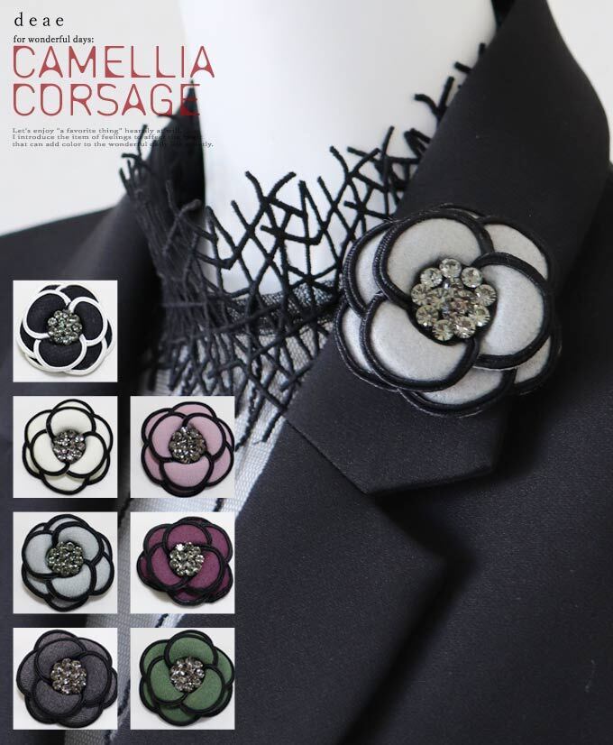 コサージュ カメリア グログラン ツイード ツィード ブローチ フォーマル 卒業式 卒園式 入学式 入園式 花 ピン 華やか 大人 上品 エレガント ブラック ホワイト グレー アッシュピンク パープル グリーン ビジューdz10236