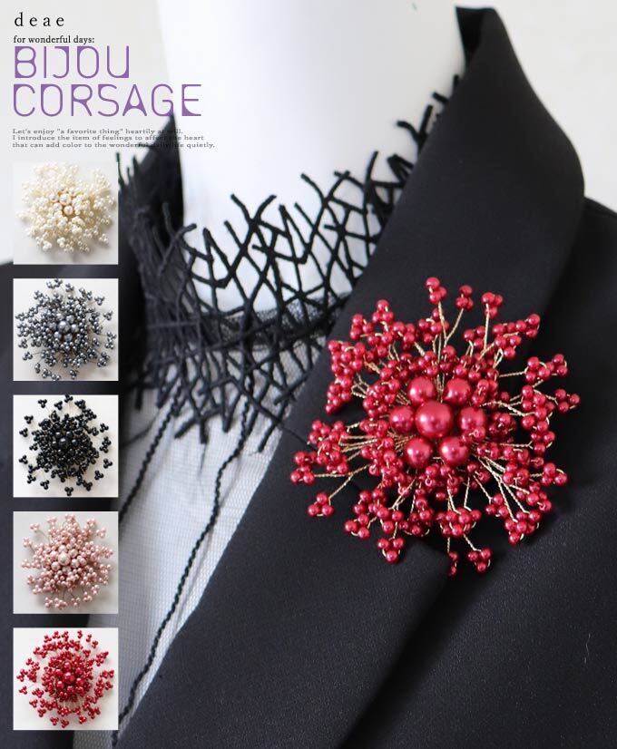 コサージュ ブローチ フォーマル 卒業式 卒園式 入学式 入園式 パール 花 ビーズ ピン 華やか 大人 上品 エレガント ホワイト グレー ペールピンク 淡い色 ブラック レッド ワイヤーフラワーdz10234