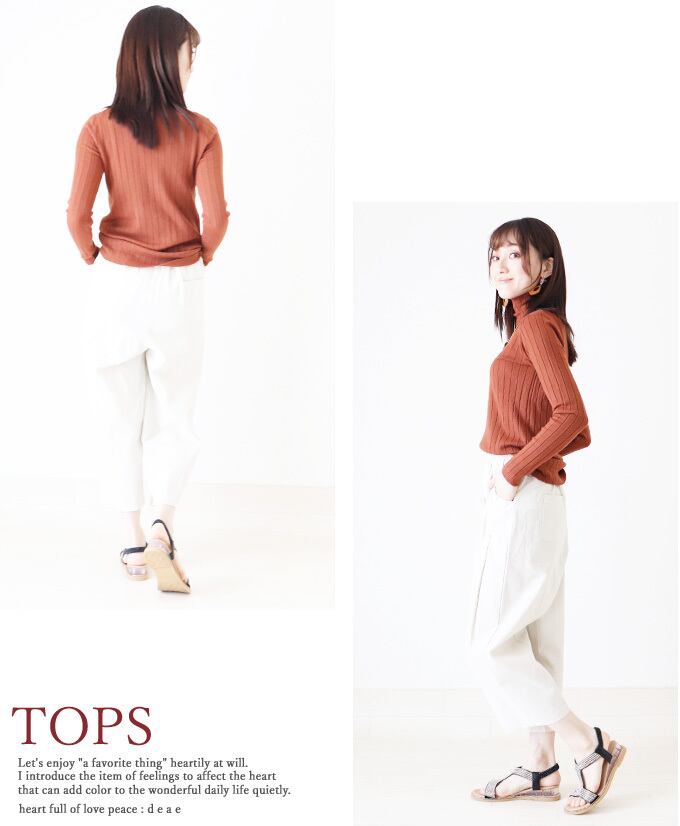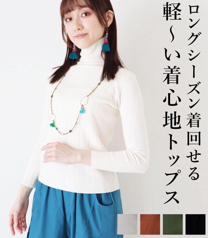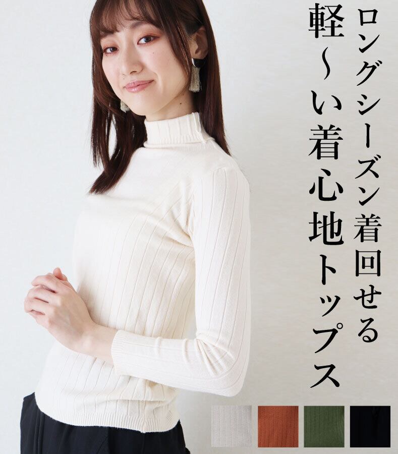 トップス 長袖 ハイネック オフネック リブニット ブラック アイボリー ブラウン カーキグリーン ストレッチ レディース オールシーズン ファッション カジュアル「ロングシーズン着回せる 軽~い着心地トップス」da10122a