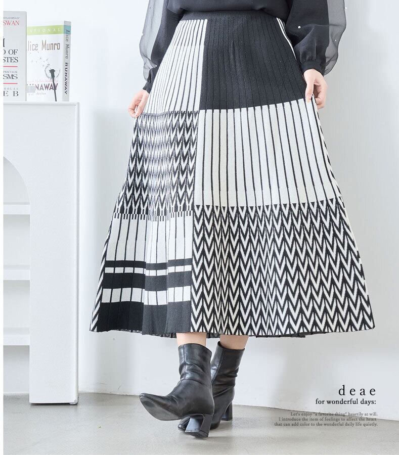 ニットスカート ストライプ ボーダー チェック 柄 ミックス柄 ニットスカート Aライン フレア スカート ミディアム丈 レディース 「ミックス柄で日々のコーデに程よい個性を添えてくれるニットスカート」dc10200