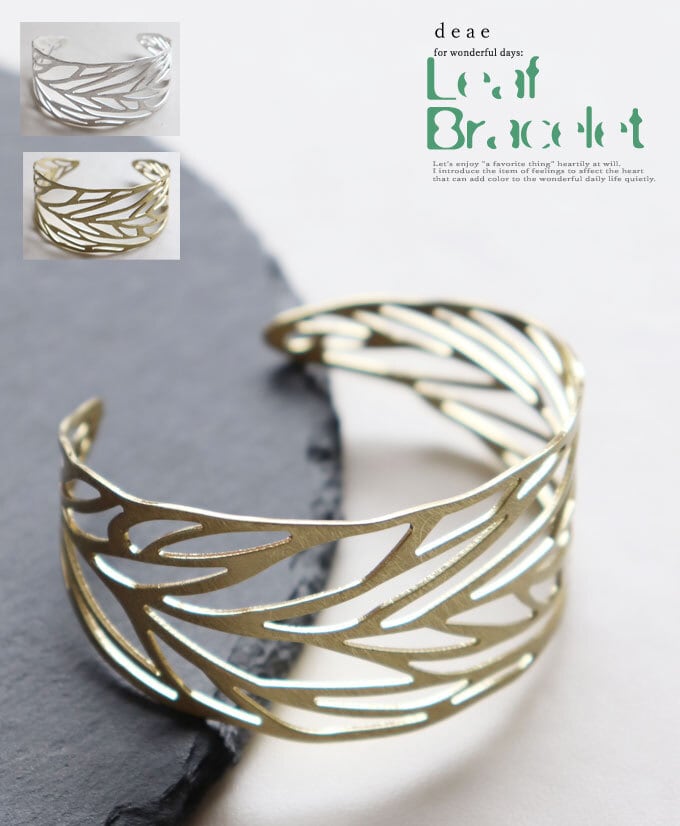 ブレスレット カービング リーフ 木の葉 上品 エレガント 優雅 オリエンタル エスニック シルバー ゴールド マット加工 レディース ファッション 春 夏 秋 冬 オールシーズン カジュアル 大人ナチュラル 「木の葉のかたちを映した アートブレス」dz10159