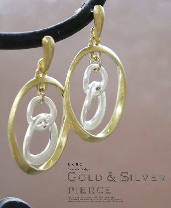 ピアス ゴールド シルバー リングデザイン 揺れる カジュアル 綺麗め 上品 レディース ファッション 春 夏 秋 冬 オールシーズン 「シルバー&ゴールドで どんなコーデにも合わせやすい 着回し力抜群のピアス」dz10169