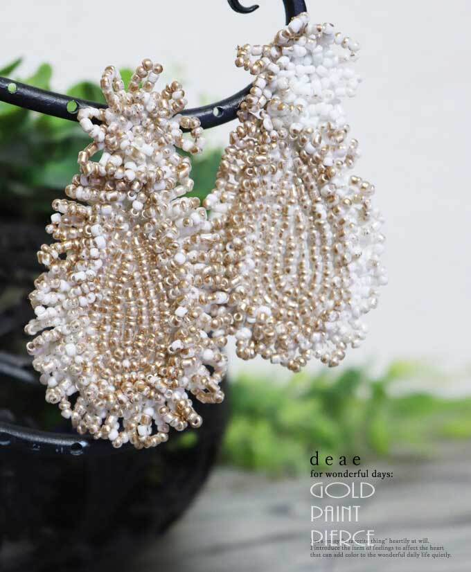 ピアス【ホワイト】DEAE ゴールドカラーのペイント ビジューピアス 雫 ドロップ ピアスde10150