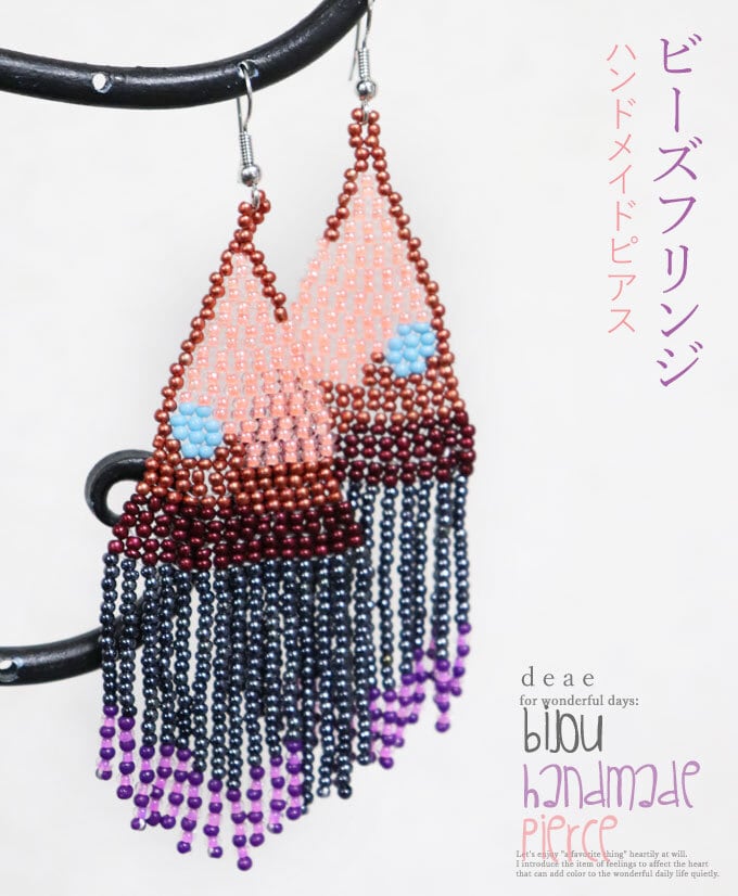 ピアス レディース ファッション ハンドメイド ビーズ フリンジ ビジュー ピンク ミックスカラー 春 夏 秋 冬 オールシーズン 大人 カジュアル お洒落 可愛い「ビーズのフリンジピアス」de10137