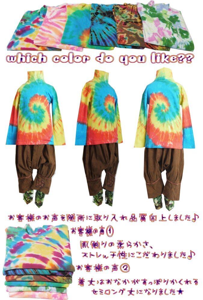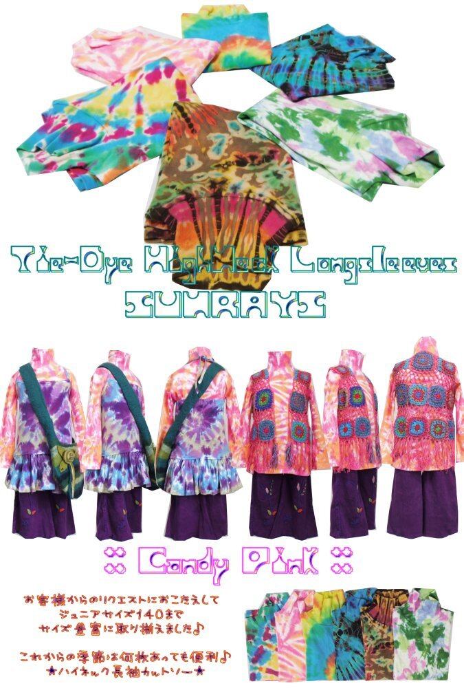 #ハイネック #タートルネック #長袖 #タイダイ染め #インナー #ストレッチ #綿#ベビー #キッズ #子供服 #エスニック #ヒッピー #アジアン