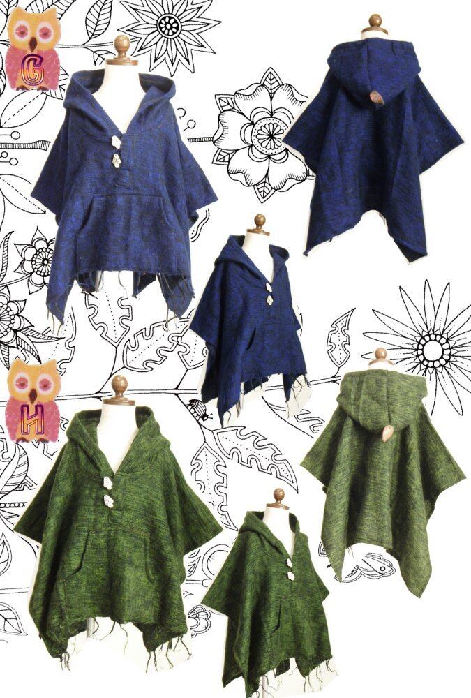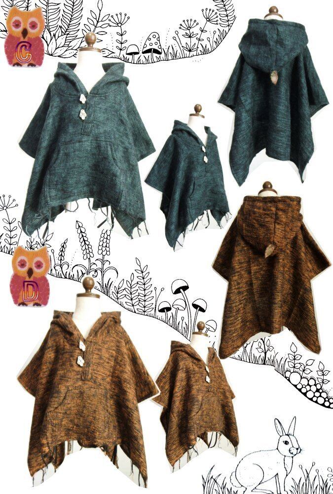 【90-120】きのこ ボタン の ポンチョ (品番sp115)【アウター マント ジャケット コート ウール ナチュラル フェアリー 北欧 ベビー キッズ 子供服 エスニック ヒッピー アジアン】