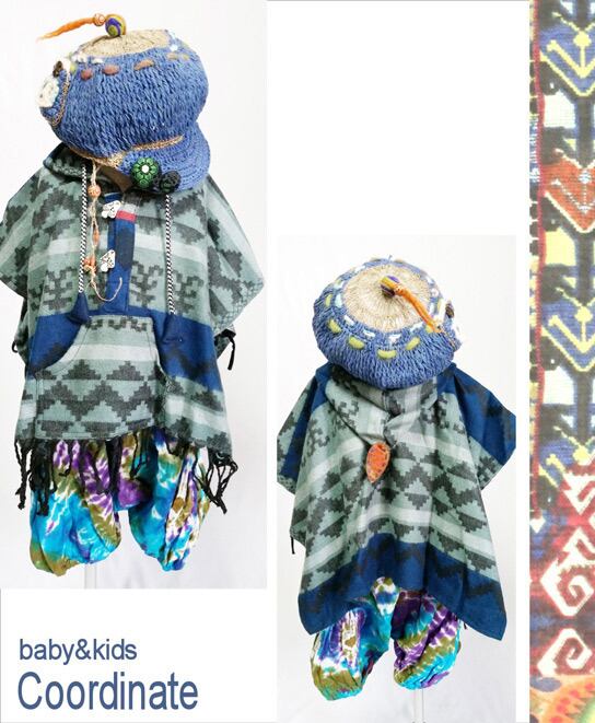 【90-120】【送料無料】エスニック 柄 ポンチョ (品番sp014)【ベビー キッズ 子供服 エスニック ヒッピー アジアン】