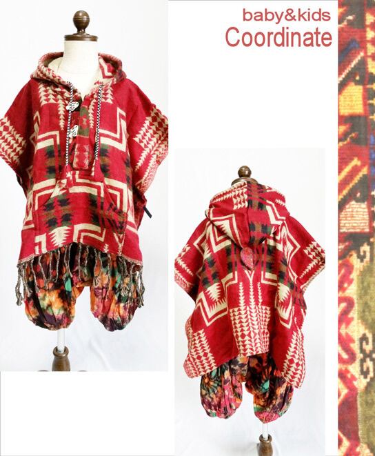 【90-120】【送料無料】エスニック 柄 ポンチョ (品番sp010)【ベビー キッズ 子供服 エスニック ヒッピー アジアン】